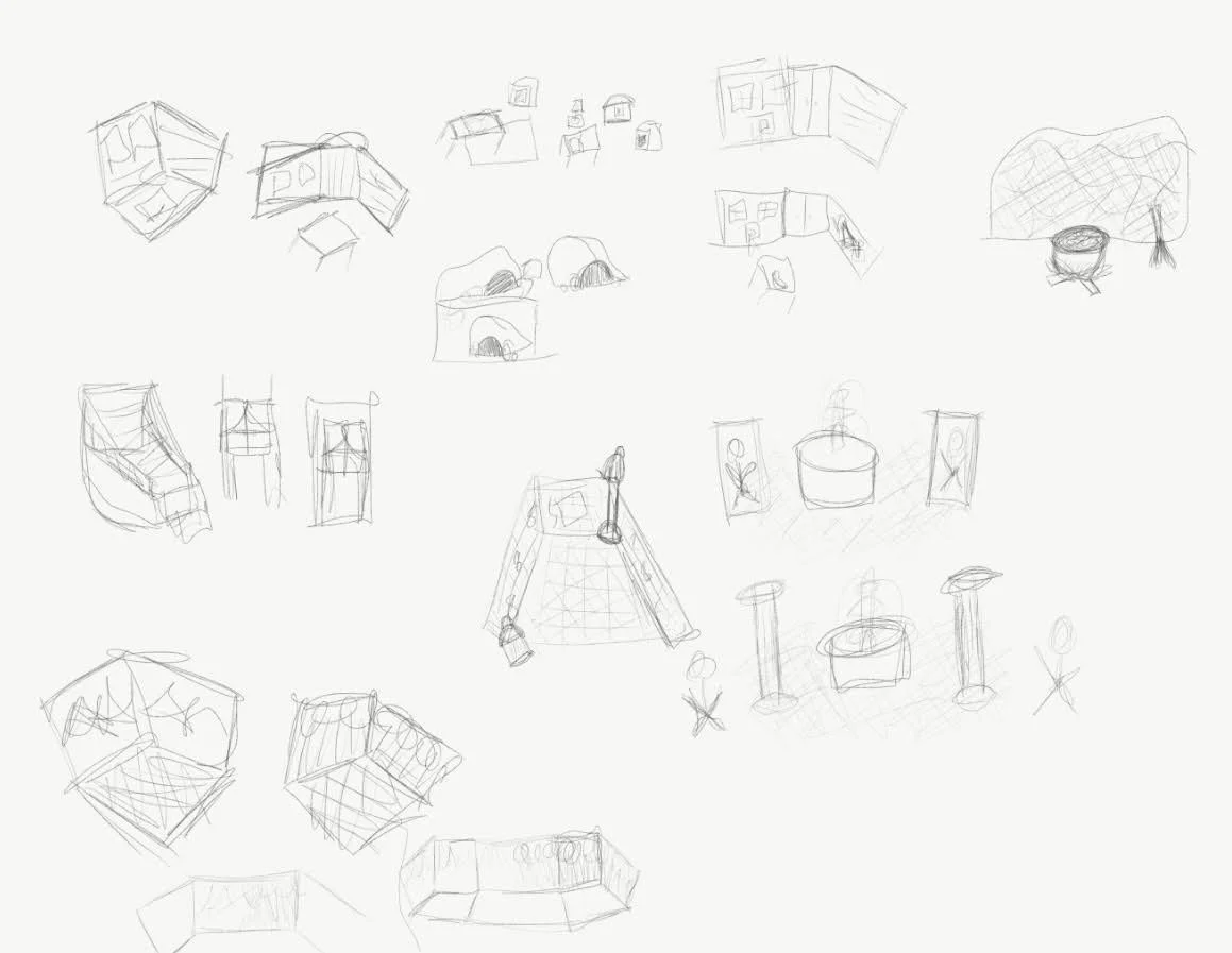 Some examples of my initial sketches for all the songs and two specific songs, Right Through You and Say Goodbye